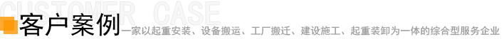 公司以往從事過:冷水機(jī)組、發(fā)電機(jī)組、大型空調(diào)、鍋爐、燃?xì)鈾C(jī)、機(jī)床、精密儀器、印刷機(jī)、干洗機(jī)、注塑機(jī)、壓力機(jī)、配電機(jī)組、高層水塔